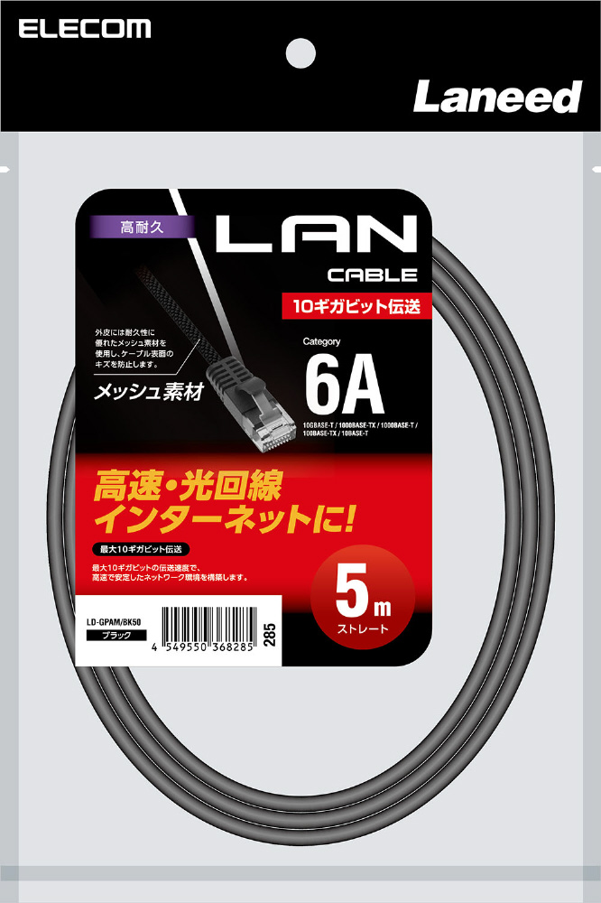 LD-GPAM/BK50 LANケーブル 高耐久 ブラック [5m /カテゴリー6A /メッシュ]