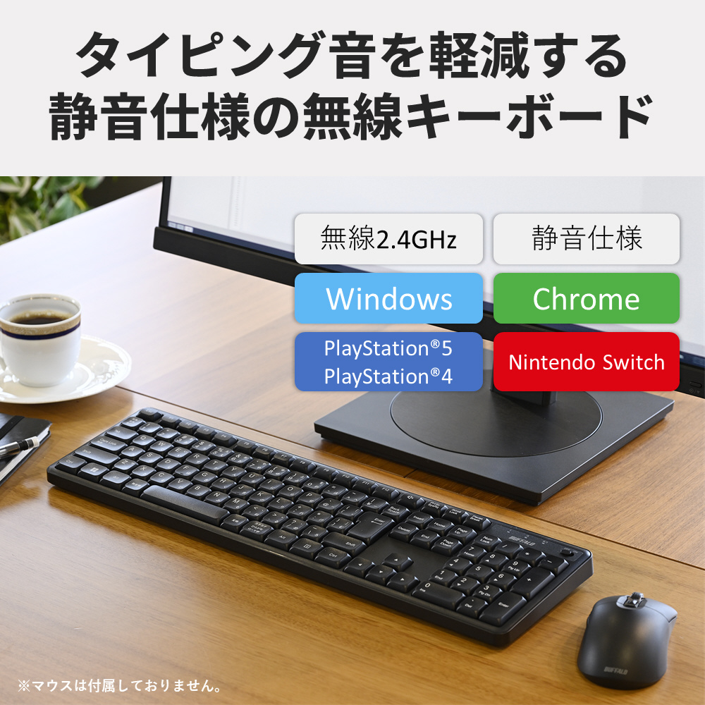 音が気になる場所でも使いやすい無線2.4GHz 静音キーボード