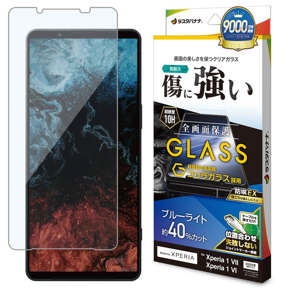 Xperia 1 VII/1 VI ゴリラガラスフィルム ブルーライトカット 高光沢 0.33mm 位置合わせJM付き