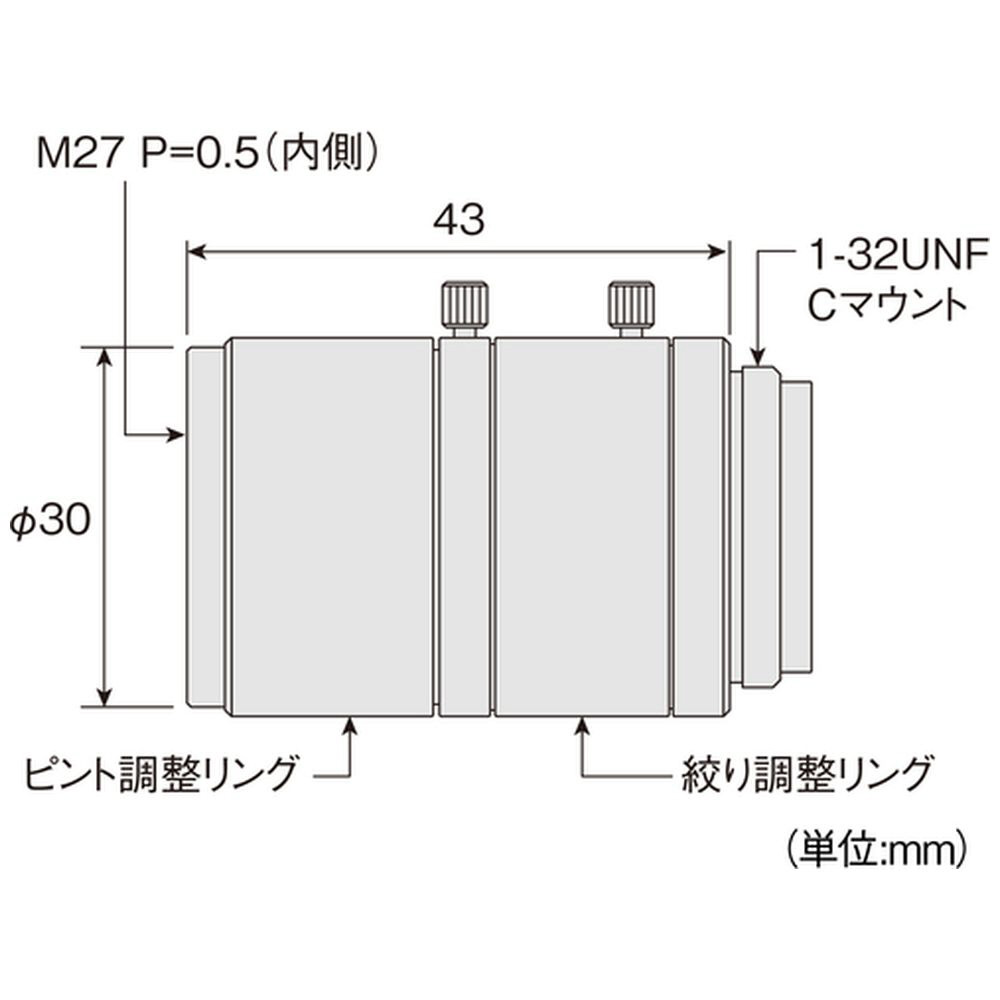 焦点距離(16mm相当)が固定なため、作動距離を変えて倍率を調整するレンズです。