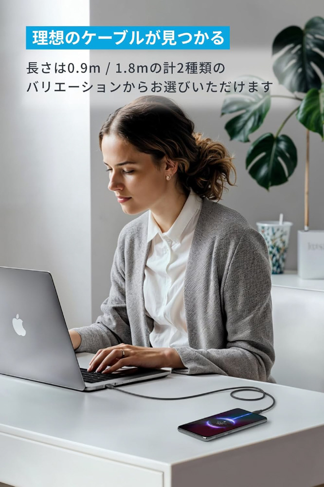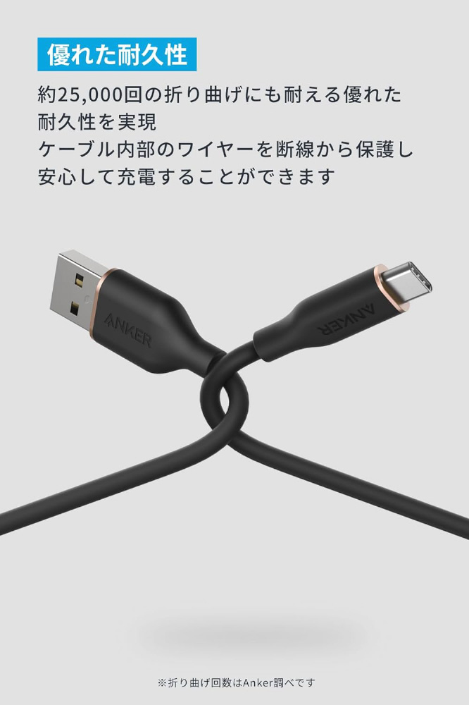 約25,000回の折り曲げにも耐える優れた耐久性を実現しているため、ケーブル内部のワイヤーを断線から保護し、安心して充電することができます。