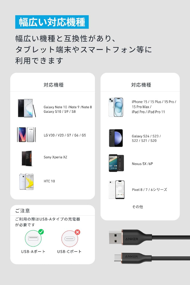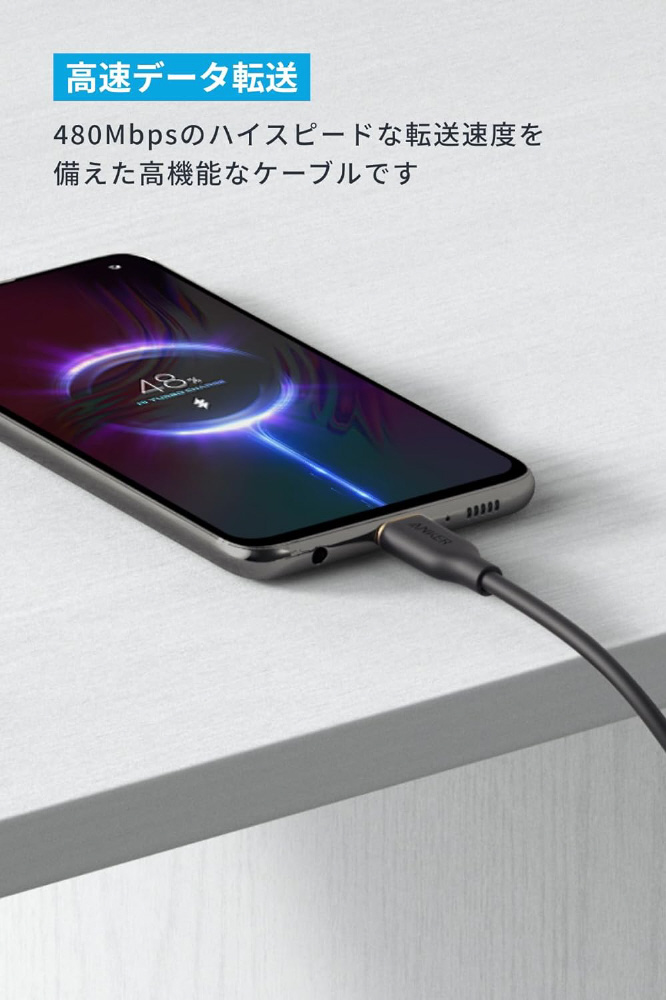 Anker USB-C & USB-A ケーブル (Flow) 1.8m ブラック A85G1N12 A85G1N12 [USB Power Delivery対応]