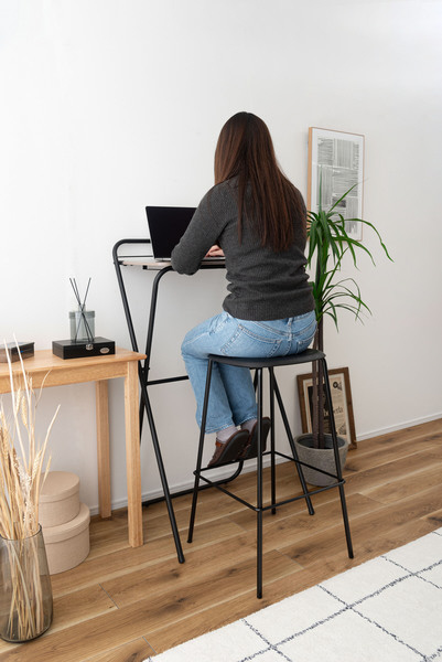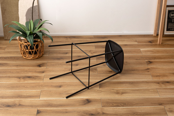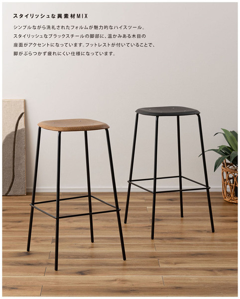 ●スタイリッシュなブラックスチールの脚部に、温かみのある木目の座面がアクセント。
