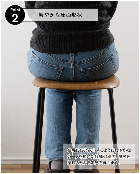 ●お尻にフィットするように緩やかなカーブを描いた座面。安定感のある座り心地。