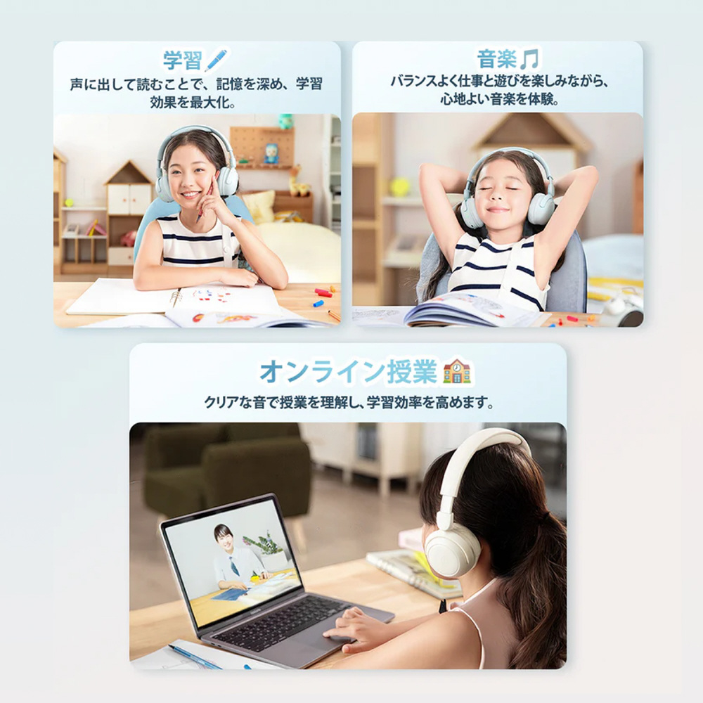 オンライン学習をはじめ、音楽鑑賞、通話、ゲームなど、幅広いシーンで活躍。1MORE専用アプリを活用すれば、さらに細かいカスタマイズが可能です。