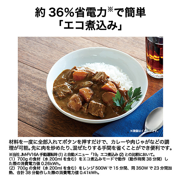 ※1 JM-FV16A手動運転時(1)の自動メニュー[19]エコ煮込み(2)との比較において。