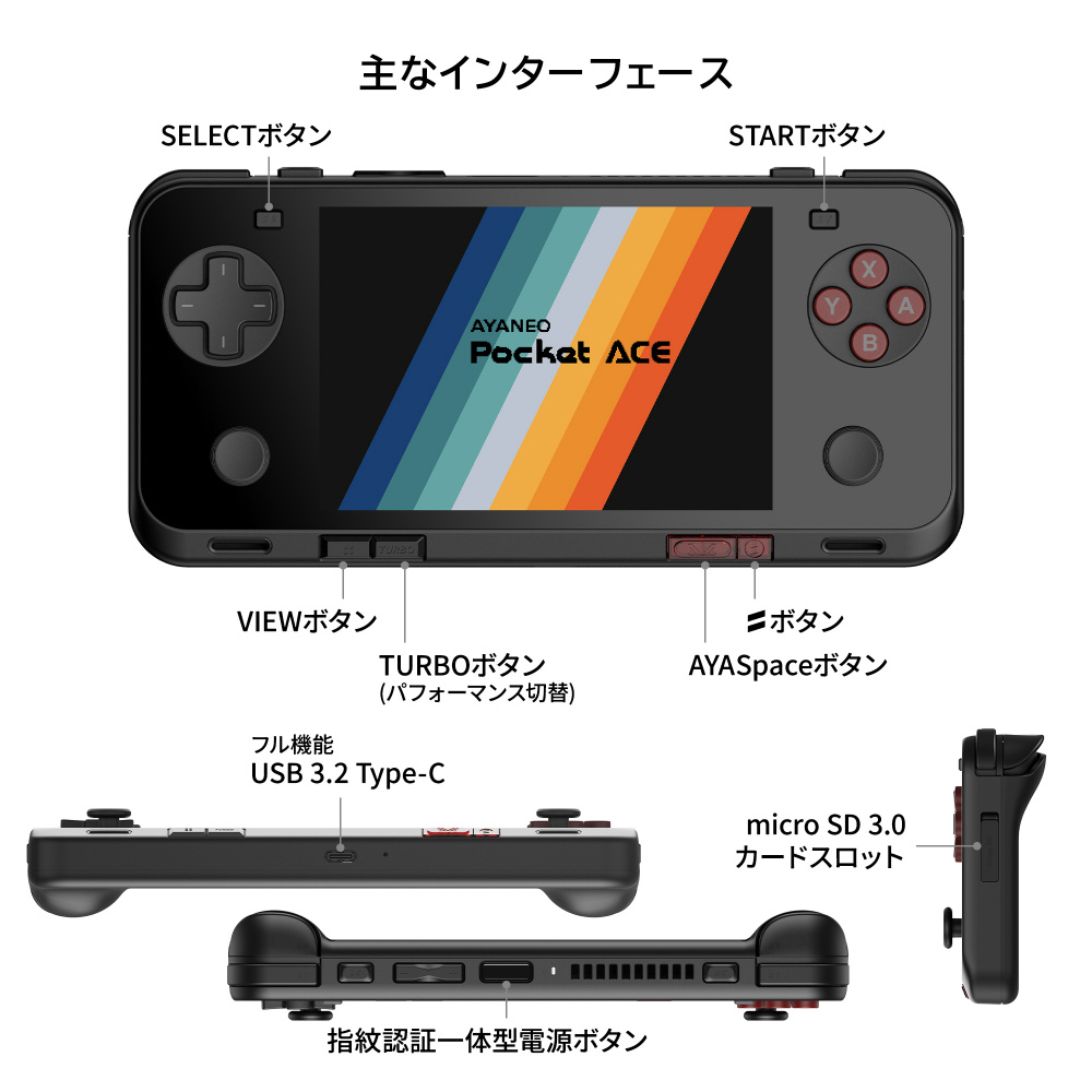 AYANEO Pocket ACEはレトロゲームに最適な3:2比率の4.5インチIPS液晶を採用したAndroid OS搭載のポータブルゲーミング機。