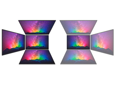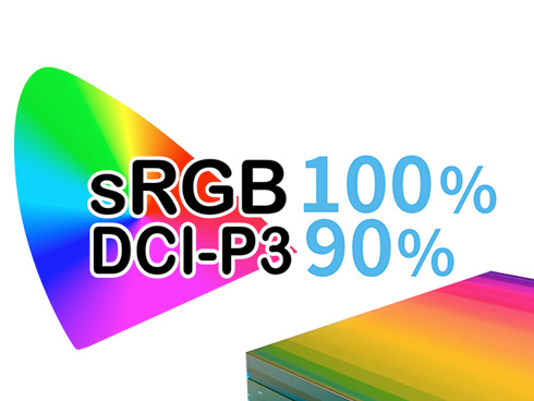 ■あらゆる角度から見ても色やコントラストの変化がおきにくいIPSパネルを搭載し、広視野角上下左右178°を実現します。最大輝度300cd/m2の液晶パネルは、sRGB:100%、DCI-P3:90%の広色域に対応し、動画や写真も色鮮やかに美しく表示します。