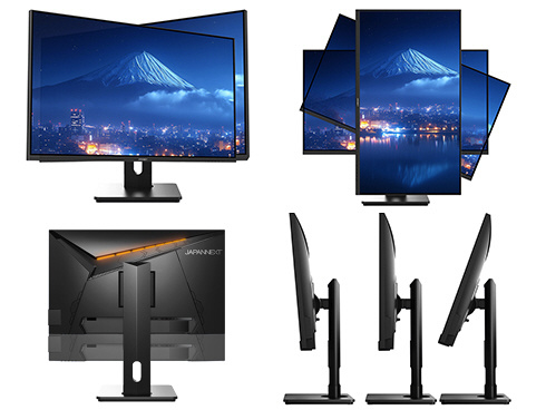 ■最大110mm(横置時)の範囲で高さ調整が可能な昇降式多機能スタンドを搭載。また、90度右に回転させての縦での使用も可能です。