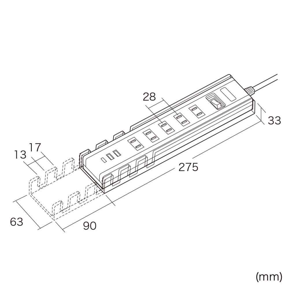 ●2P・5個口の電源タップで、USB充電ポートが3つ付いています。
