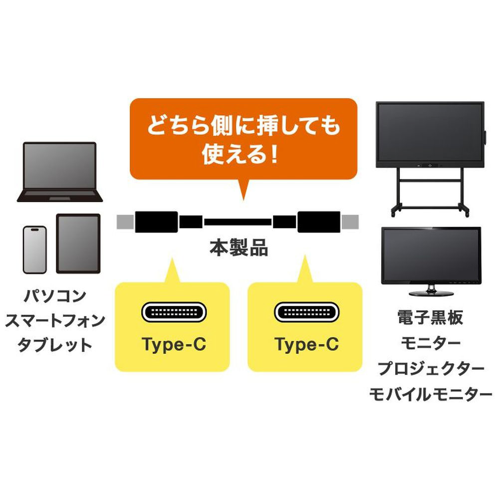 ■USB Type-Cポートを持つパソコンやタブレット端末などと、USB機器(Type-Cポートを持つ機種)を接続するためのケーブルです。