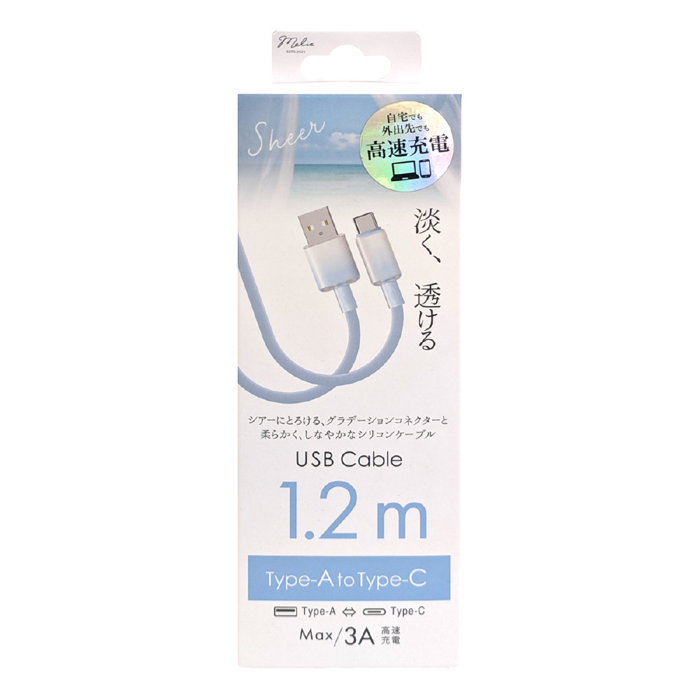 SheerカラーType-A/Type-Cケーブル 1.2m アイスブルー