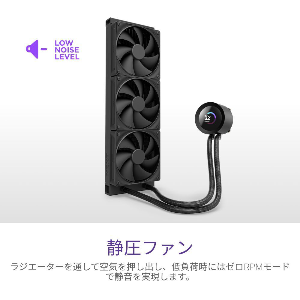 NZXTタービンポンプは高流量と高圧力のために設計されており、効率的で低ノイズの冷却を提供し、重い作業負荷の下でCPUが最高のパフォーマンスを発揮するようにします。