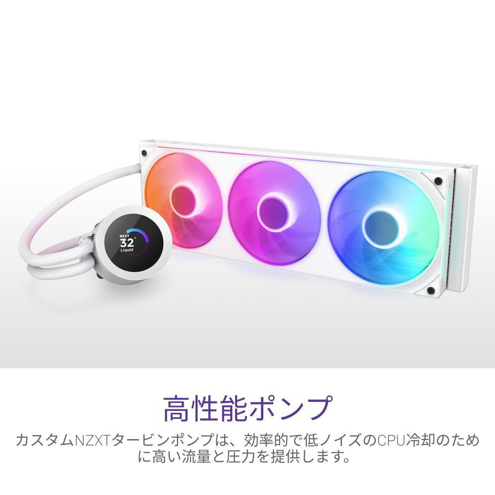 水冷CPUクーラー 120mmファンx3 [LGA1851/1700/1200/115X・AM5/AM4] KRAKEN PLUS RGB 360 ホワイト RL-KR360-W2