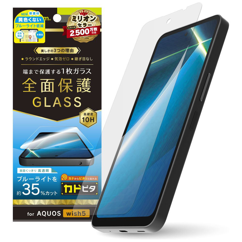 AQUOS wish5 黄色くないブルーライト低減 画面保護強化ガラス 位置ピタ 光沢 TR-AQ25W-GLI-CSB3CC