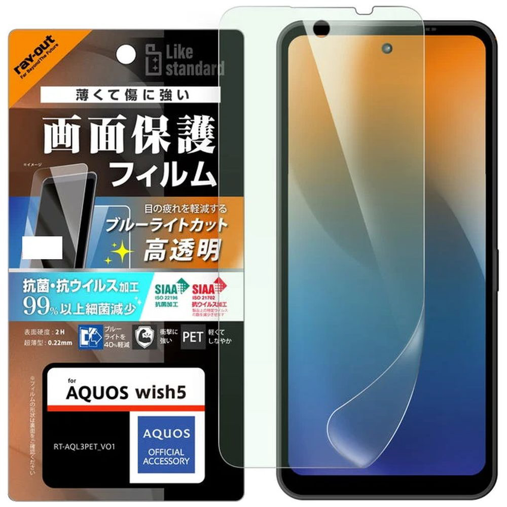 AQUOS wish5 フィルム 衝撃吸収 ブルーライトカット 光沢 抗菌・抗ウイルス RT-AQL3F/DM