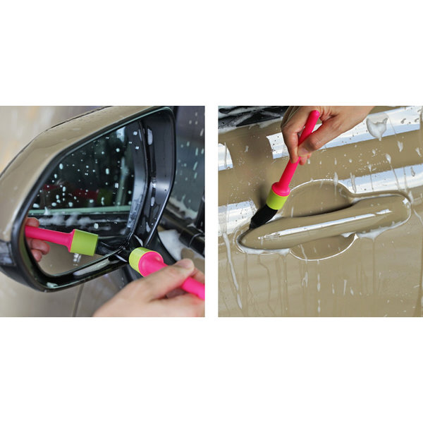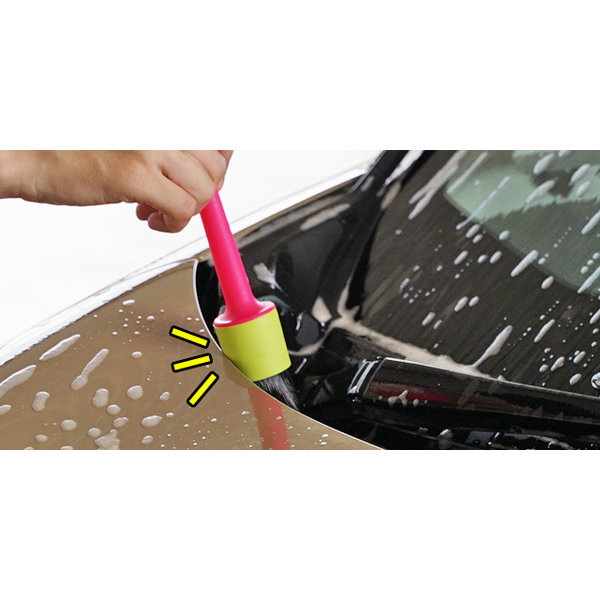 洗車スポンジでは洗い残してしまうような、複雑な形状のパーツ等細部の汚れを、すみずみまで徹底的に洗浄できる、筆形状のボディ洗浄用ディテイリングブラシ。