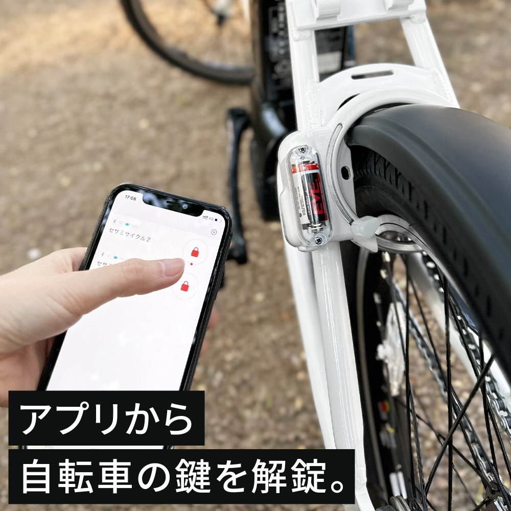 【自転車の鍵もスマート化】毎日使う自転車もシンプルにスマホで鍵の開け閉めができる。鍵の持ち運びやかけ忘れの心配が不要になります。