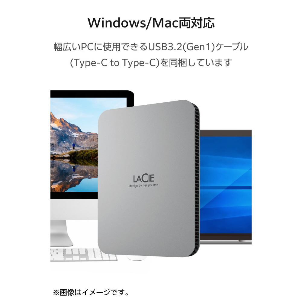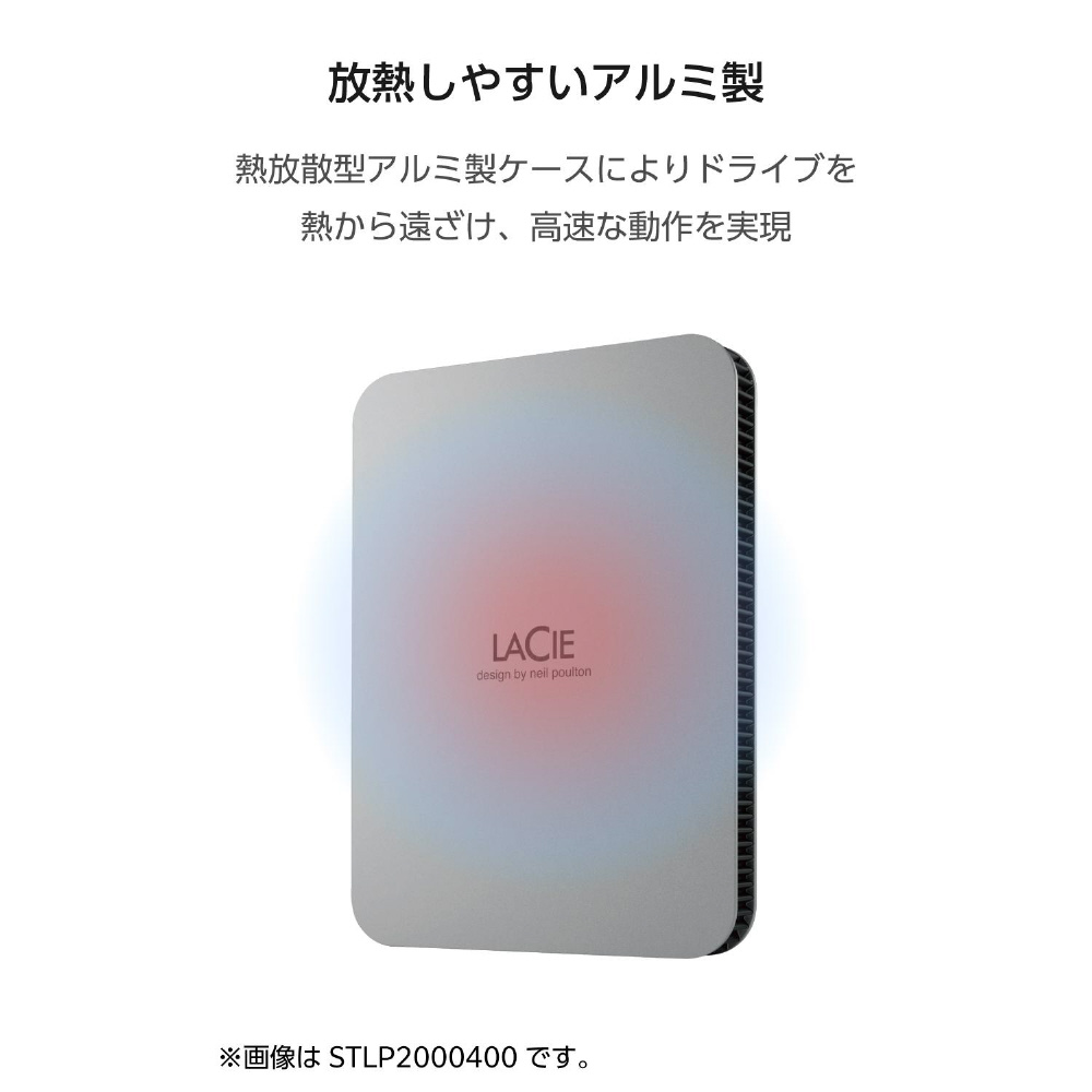 STLR2000400 LaCie 外付け ポータブル HDD 2TB Mobile Drive Secure USB Type-C 3年保証 データ復旧サービス付 熱放散型アルミ製ケース 自動バックアップ機能 【 Windows Mac iPad 対応 】