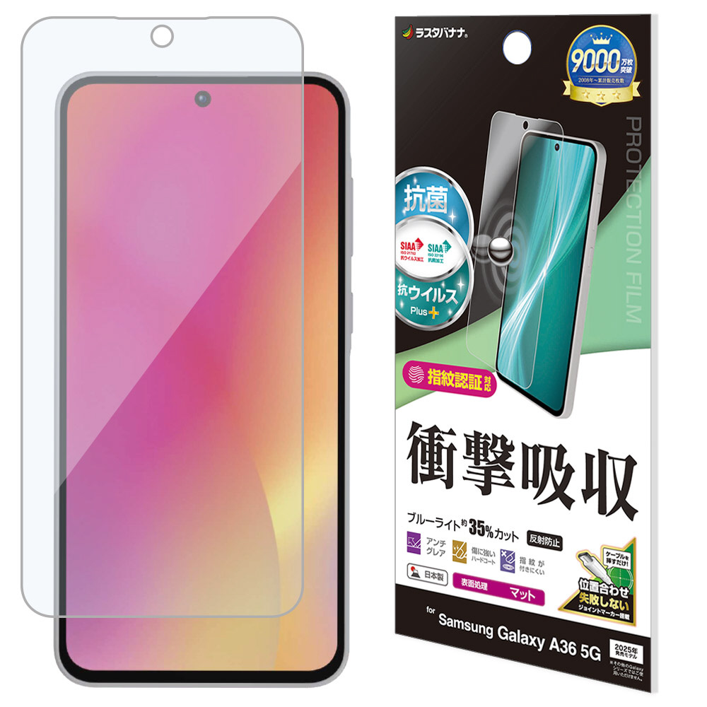 Galaxy A36 5G 衝撃吸収フルスペック 抗菌・抗ウィルス 反射防止フィルム VY4643GA36