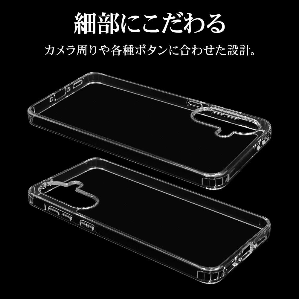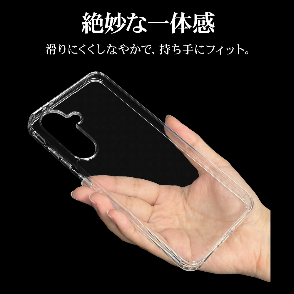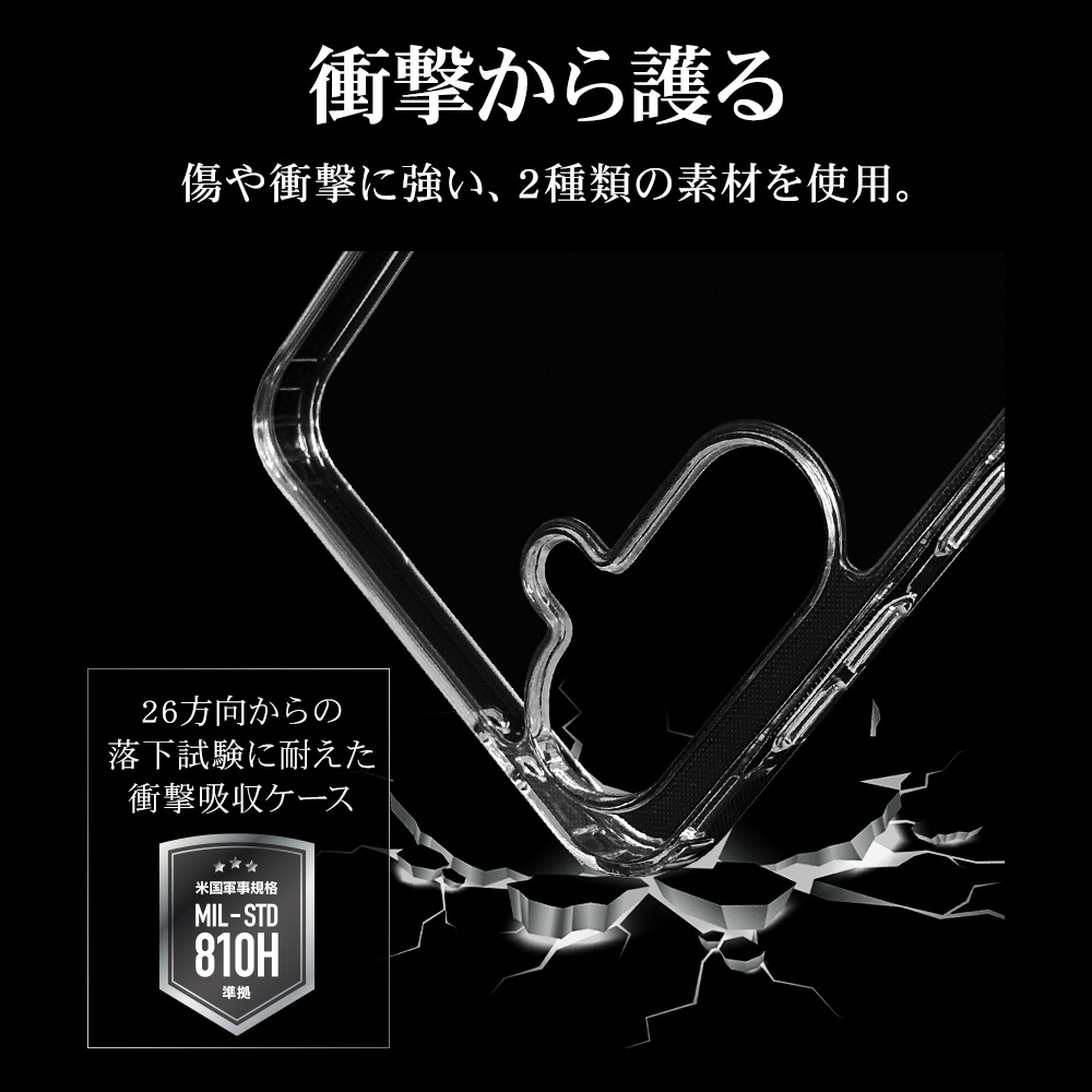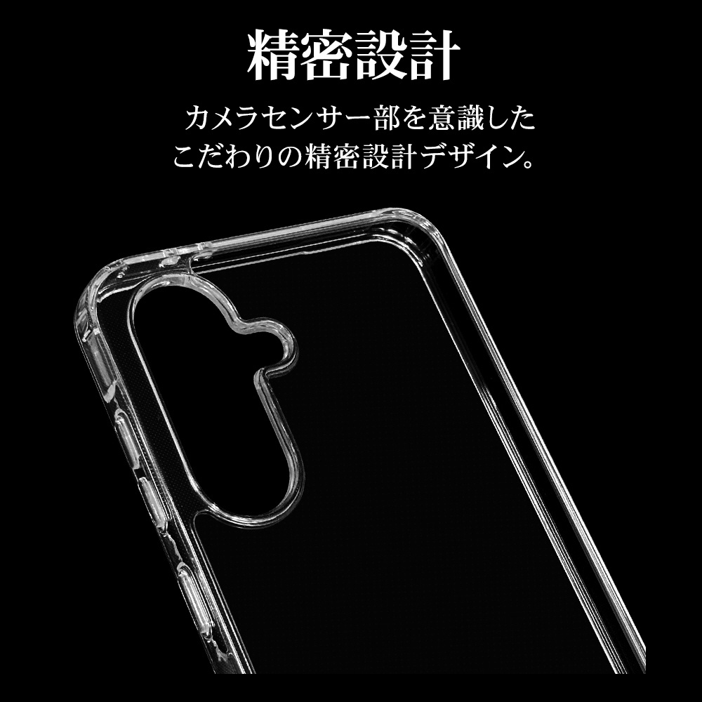 ●側面は弾力と柔軟性を兼ね備えたTPU素材で端末を衝撃から保護。背面は表面硬度5Hの傷に強いアクリル素材を使用しています。