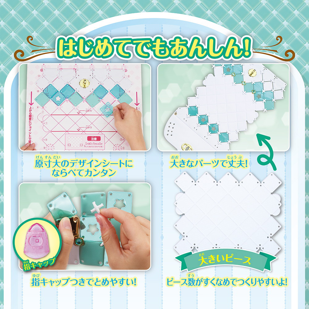 原寸大のデザインシートと大きい底パーツではじめてでも簡単に作れちゃう♪