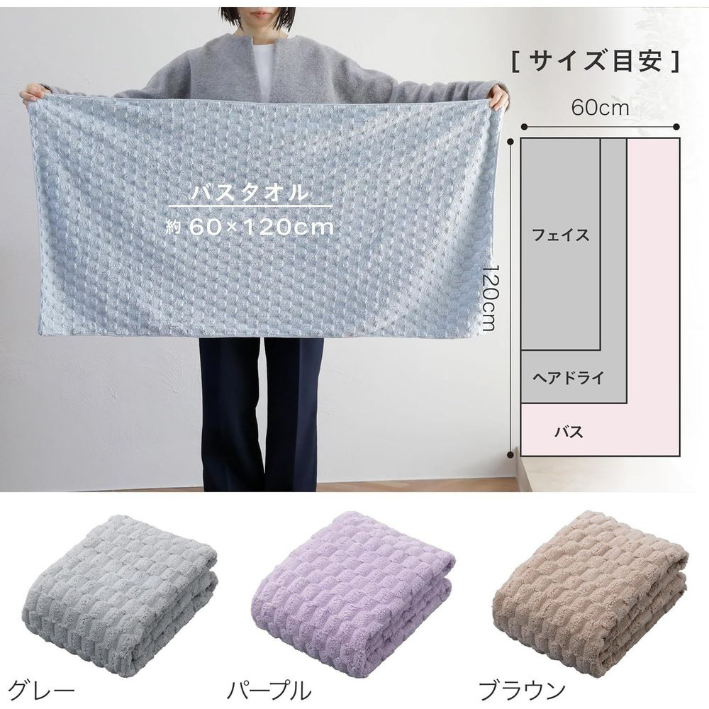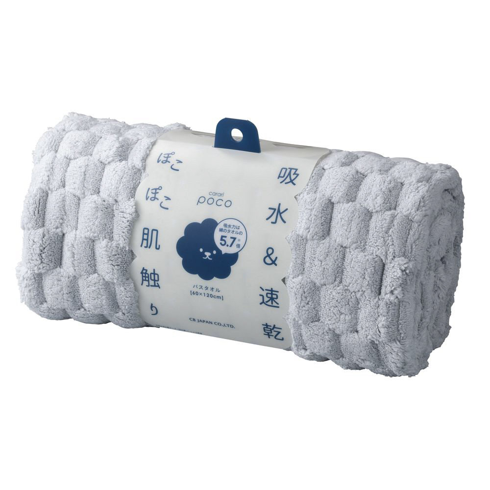 ずっと触りたくなるようなポコポコ肌触り。特殊な織り方で、ポコポコとした立体構造を再現したマイクロファイバータオル。触れる表面積を増やすことによって、髪の毛や肌にフィットして素早く吸水してくれます。ゴシゴシと拭かず、そっと肌に当てるだけで吸水してくれます。マイクロファイバーならではのマシュマロのような肌触りに加えて、ポコポコの感触はクセになりそう!これまでのマイクロファイバータオルとは違った新しさをお楽しみ下さい。ふんわり軽いのに、驚くほどの吸水力!繊維と繊維の隙間でまるでスポンジのように吸水してくれます。さらにポコポコの立体構造で触れる面積が多いので、髪の毛に巻いてヘアドライにも大活躍です。たっぷり吸水した後も脱水すると一気に軽くなり、速乾性にも優れています。部屋干しが多くなる季節でも安心です。