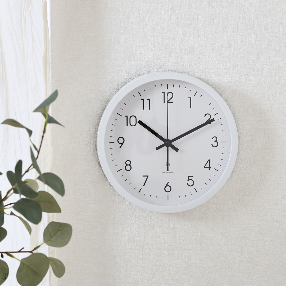 電波掛時計 シンプル 25cm ホワイト
