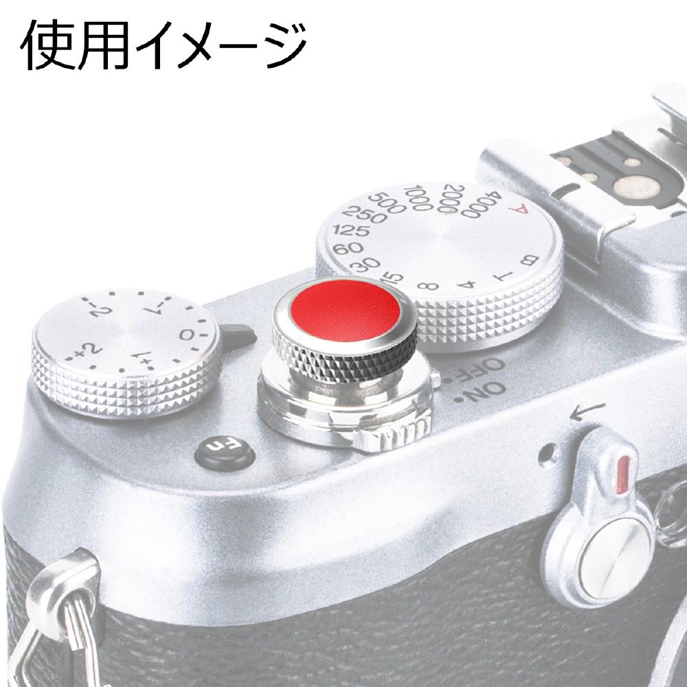 純銅製の本体の表面をカラーレザーで覆ったソフトレリーズボタン