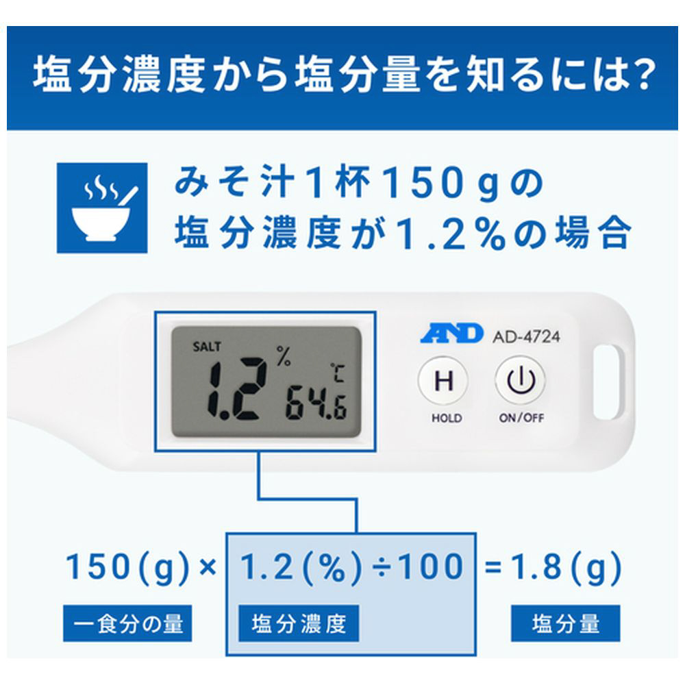 ・塩分計は、みそ汁やスープ、煮汁などのさらさらした液体の塩分濃度を測定します。