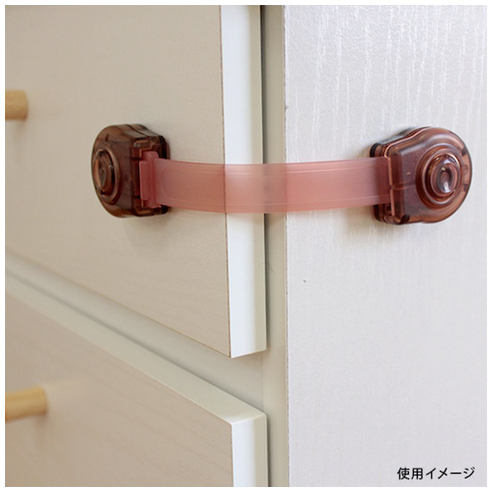 はがすときちぎれにくい強粘着、両面テープ使用で、キッチンやリビングの扉や引出しに取付け、地震の際の揺れによる開放防止、お子様のいたずらによる開閉やケガ防止に最適です。