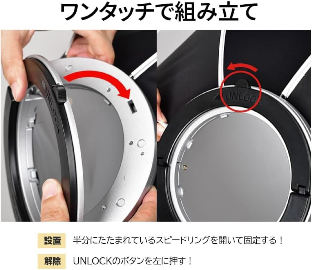 ■Flip44Pro Softboxは、Speedbox-Flip Gシリーズと同様に、特許取得済のFlip機構を採用しており、素早く簡単にセットアップが可能です。