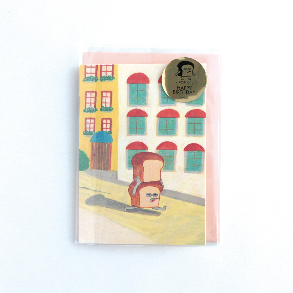 「いとしのパン」が飛び出す仕掛けのポップアップカードです。