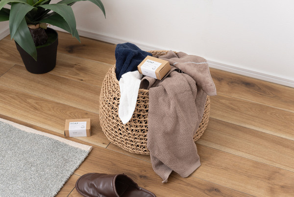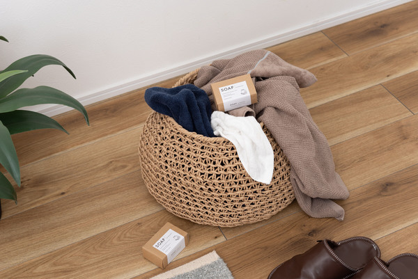 骨組みの無いクタクタな質感のラウンドバスケット。