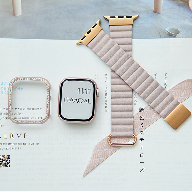 APPLE WATCH 1-11/SE1-3 38/40/41/42(10-11)MM マグネット式PUレザーバンド GAACAL ミスティローズ ミスティローズ W00186MRA