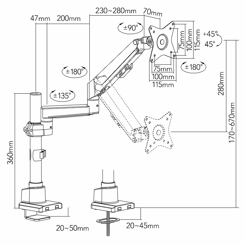 ※取り付けるモニターサイズによって調節の範囲は異なります。