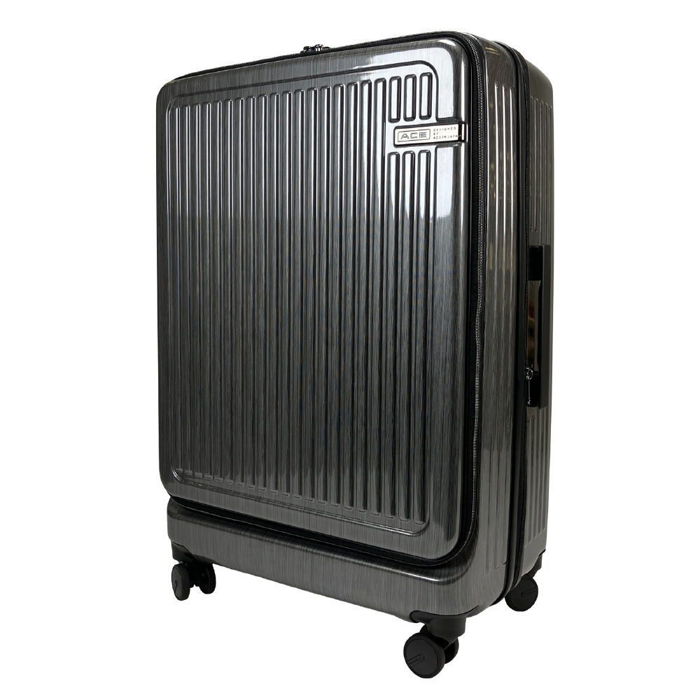 DESIGNED BY ACE IN JAPAN スーツケース フロントオープンラゲージ 87-97L 拡張型サイズ ヘアラインブラック ACE-548302 [TSAロック搭載]