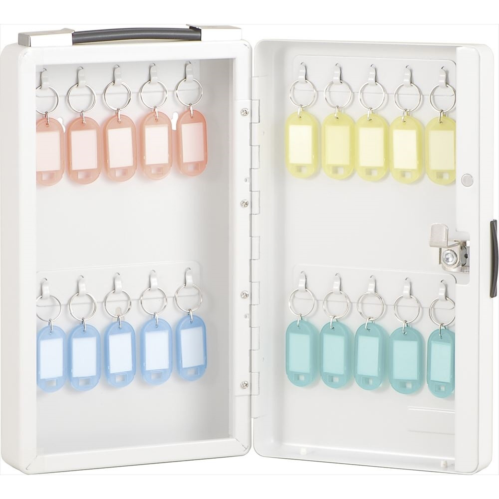 壁掛けや持ち運びもできるシンプルなキーボックスです。