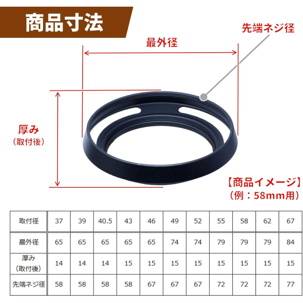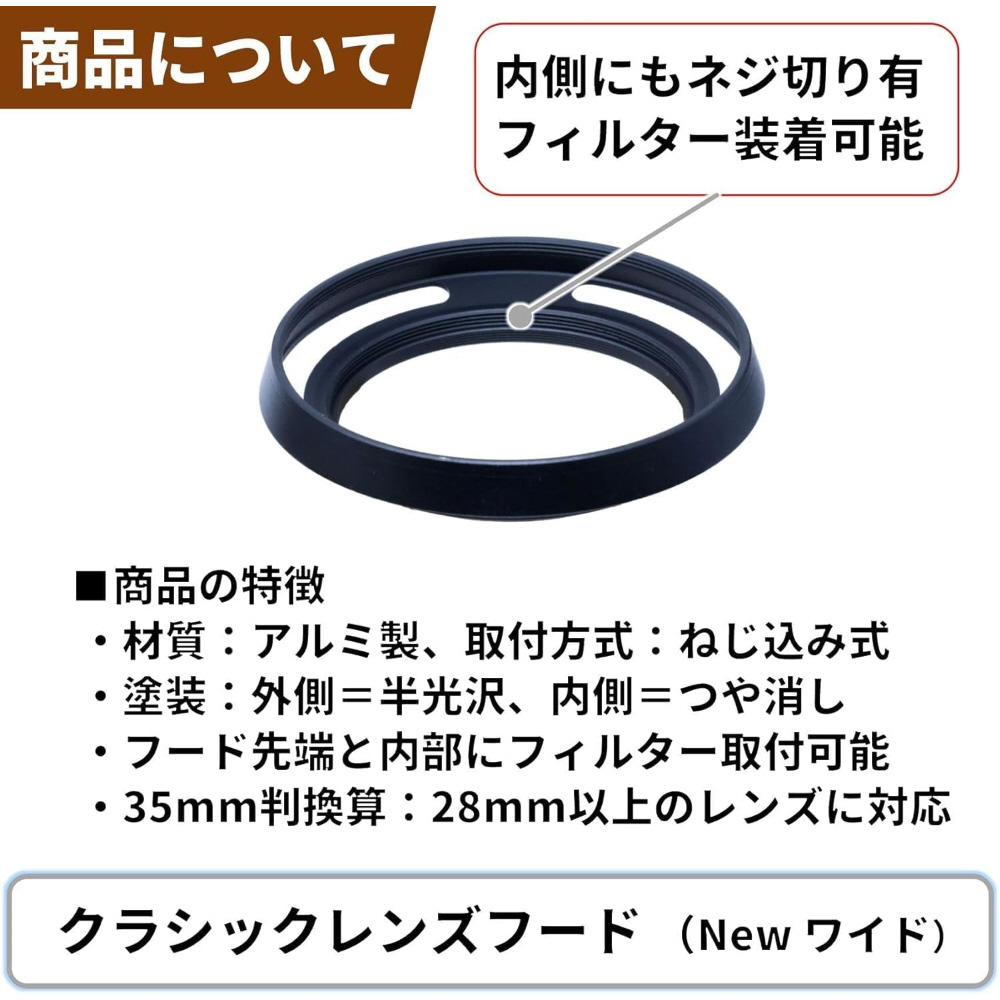 クラシックメタルレンズフード37mmのワイド&スリム(広角対応、薄型)タイプです。Newタイプとしてフード内部にもネジを設けて、フィルターの装着が可能となりました。