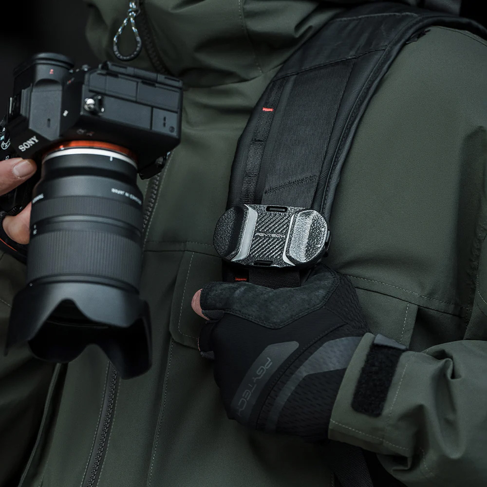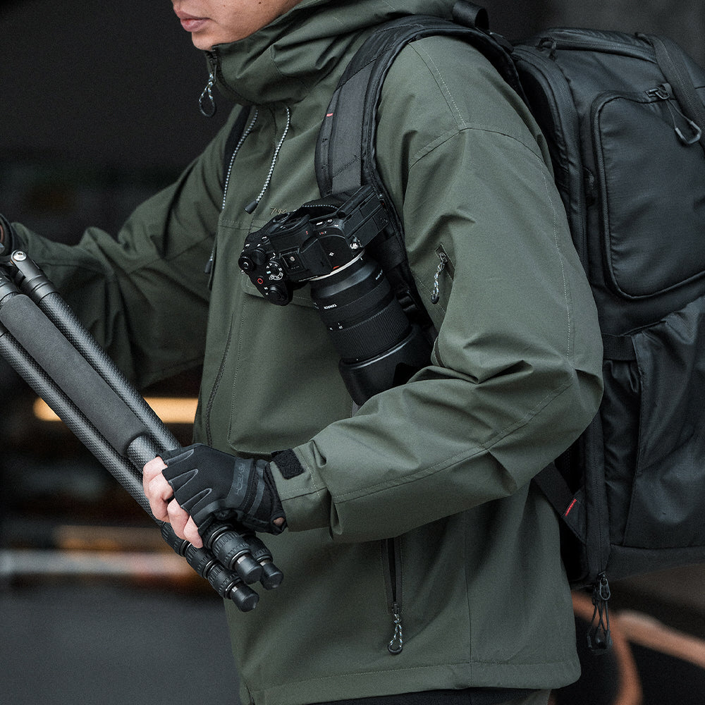 カメラをベルトやバックパックストラップにしっかりと取り付けることができ、ハンズフリーでの移動を実現します。