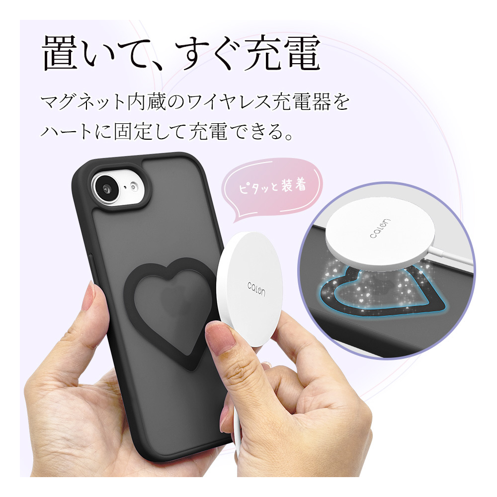 ●ケースを付けた状態でワイヤレス充電器による充電が可能です。