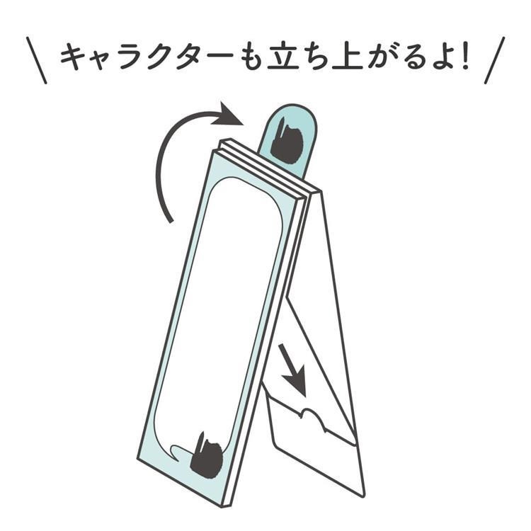 スタンド式の台紙がついた立てられるふせんです。表紙を裏面に折り返して、切れ込みに裏表紙を差し込むと、台紙を立てて使用できます。