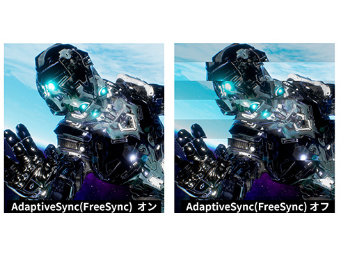 ■AdaptiveSync(FreeSync)に対応。画面のリフレッシュレートとコンテンツのフレームレートのズレから生じるティアリングを防ぎ、滑らかで美しい映像を実現します。ブルーライト軽減モードを搭載し、フリッカーフリー設計で、目と身体への負担を軽減します。