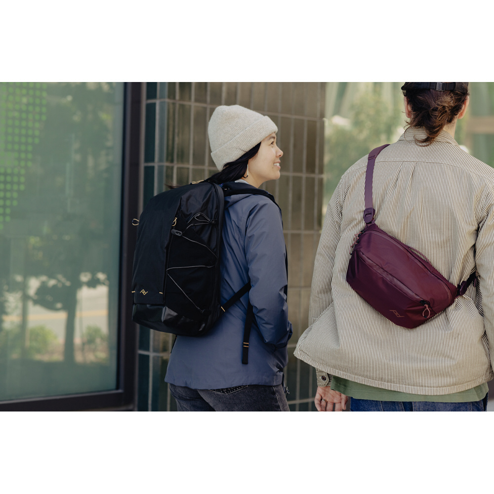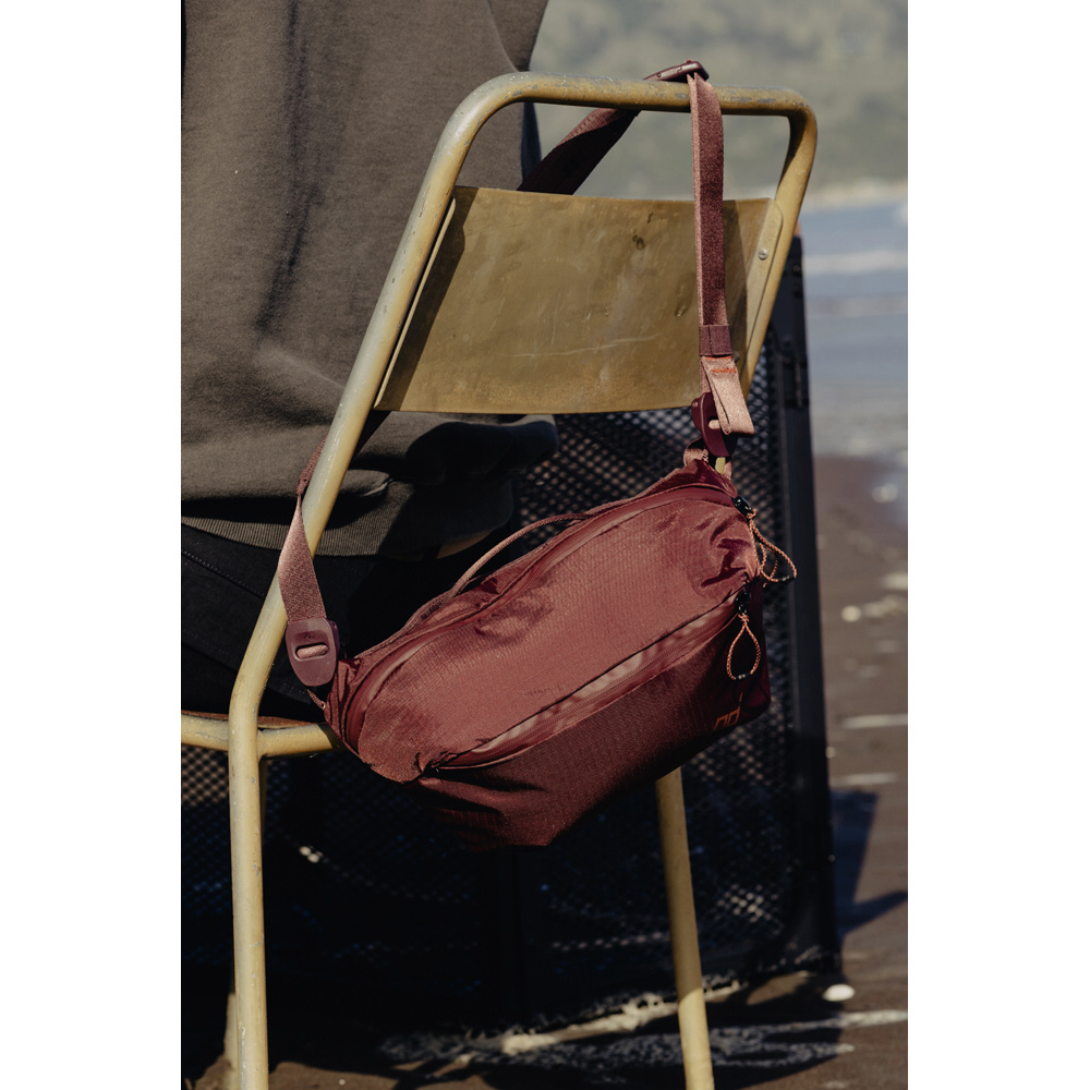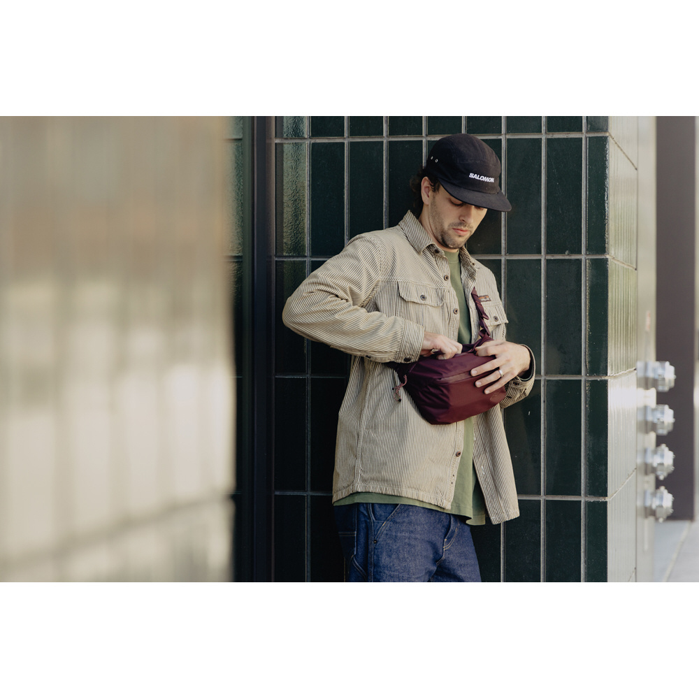 シンプルなデザインと収納力のバランスを実現した、超軽量スリングバッグ。ショルダーストラップの長さを調節して、ウエストバッグスタイルへ切り替えもできます。