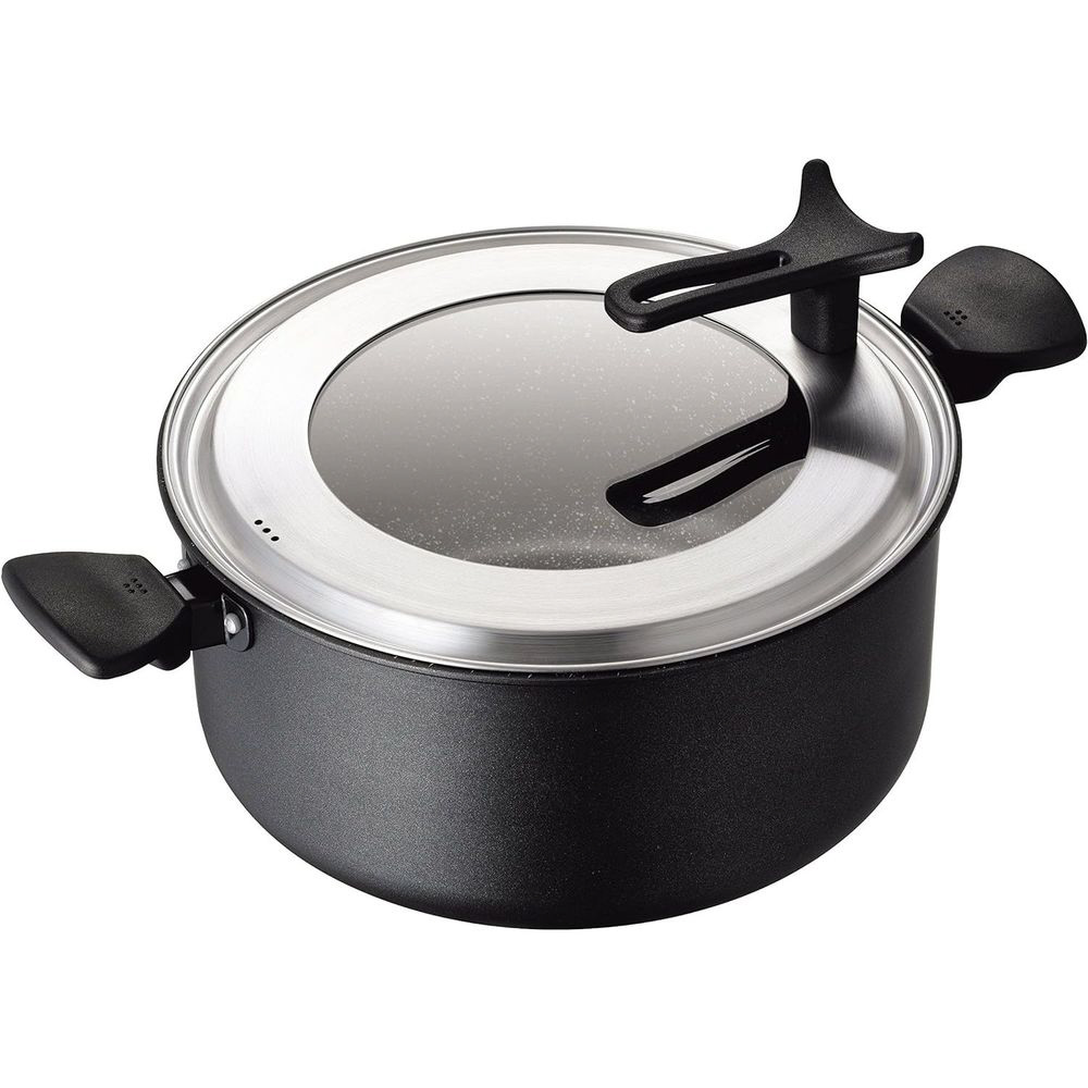 洗い物や収納するときに便利!とっても軽い鍋!鍋の側面を薄くして軽量化しました。IH・ガス火どちらにも使えます。持ちやすい独自のハンドル形状。キズや汚れに強いコーティング。場所を取らない!立てて置けるガラス蓋。