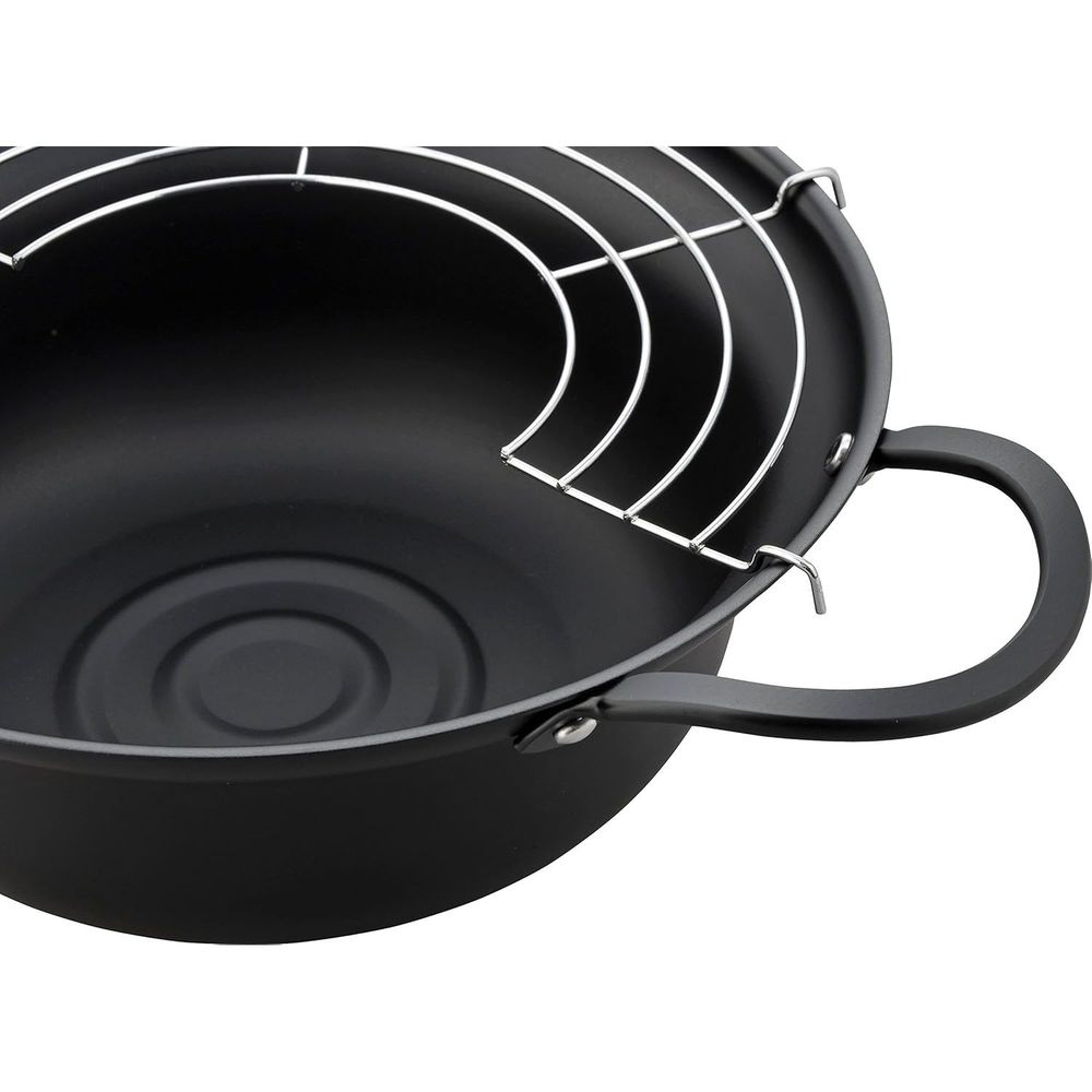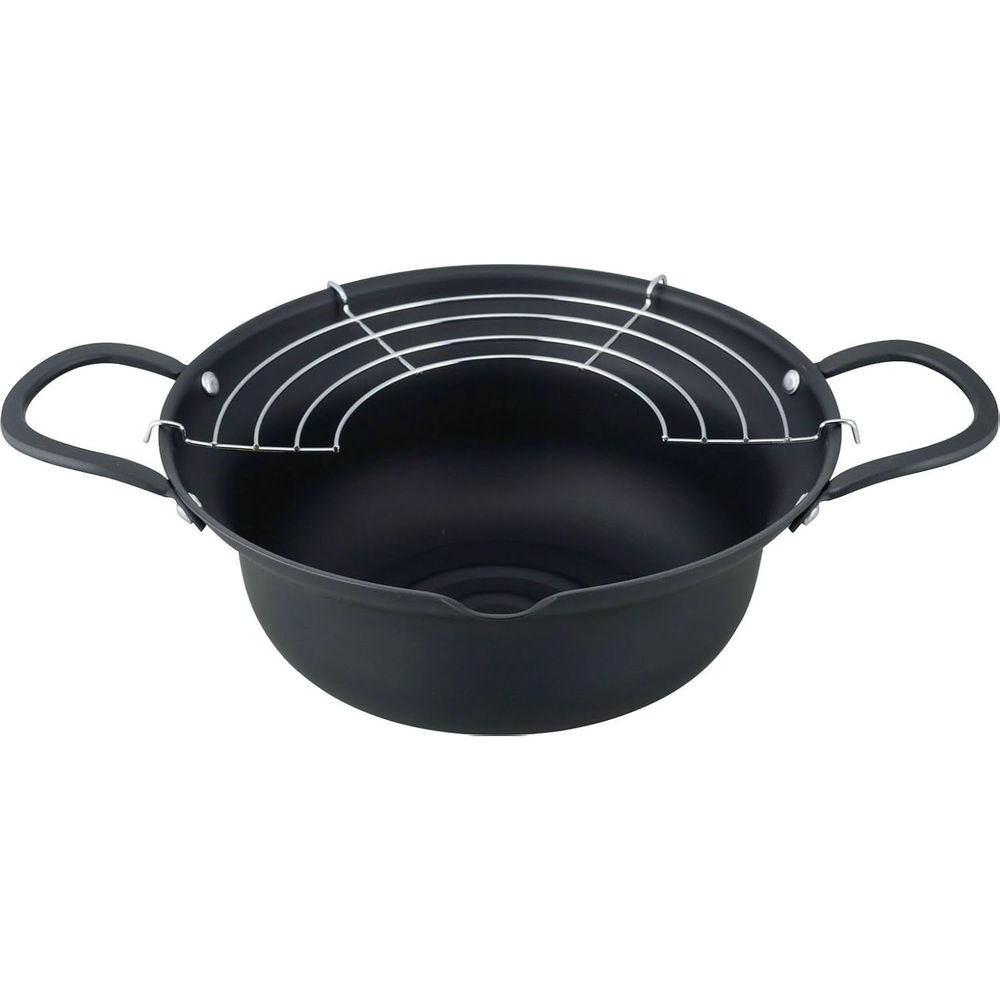 天ぷら鍋は保温性が良く、素材を入れても油の温度が下がりにくい鉄製鍋がおすすめです。油ハネを抑え、油の量も節約できる段付きタイプ。揚げ物の油がきれるアミ付で便利です。油の移し替えがしやすい注ぎ口付です。【仕様】100・200V熱源対応