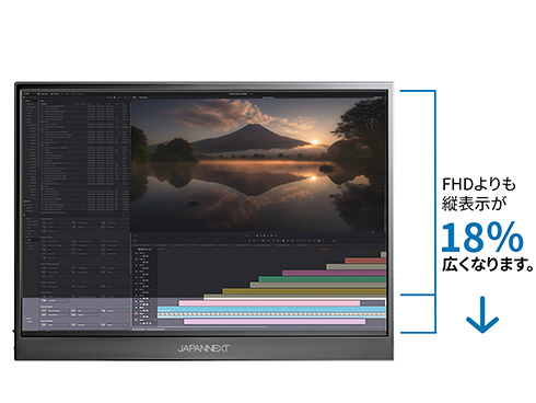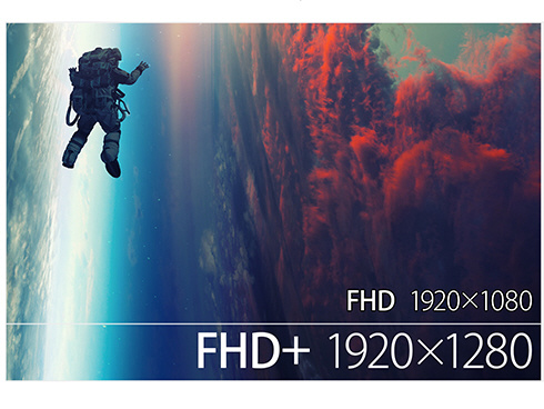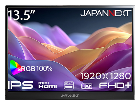 13.5インチのIPSパネルを搭載し、フルHD+(1920x1280)解像度に対応したモバイルモニターです。フルHD+(1920x1280)解像度は、従来のフルHD(1920x1080)解像度より縦の解像度が18%大きいので、ニュースやブログなどのウェブサイトを一度に表示できるコンテンツ量が増えます。