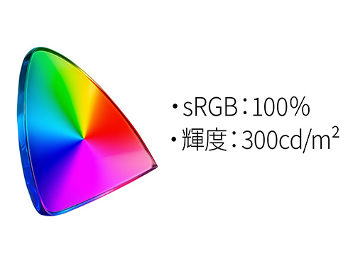 上下左右178度に対応した高画質IPSパネルを搭載し、コンテンツを色鮮やかに映し出します。最大輝度300cd/m2の液晶パネルは、sRGB:100%の広色域に対応し、動画や写真も色鮮やかに美しく表示します。