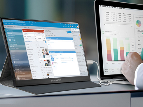 ■約550gの軽量設計と12.6mmの薄型本体により、携帯性に優れています。ワーケーションや外出先、自宅のリビングなど、大型ディスプレイを置くスペースが限られた場所でも、マルチディスプレイ環境を手軽に実現できます。高精細な画面で写真を表示したり、プレゼン画面をお客様に見せる、外出先でゲームを大画面で楽しむなど様々な使い方が可能です。