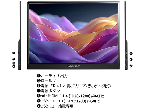 「13.5インチ IPSパネル搭載 フルHD+(1920x1280)解像度 モバイルモニター miniHDMI USB Type-C sRGB:100% アスペクト比 3:2 スマートケース付【2年保証】」
